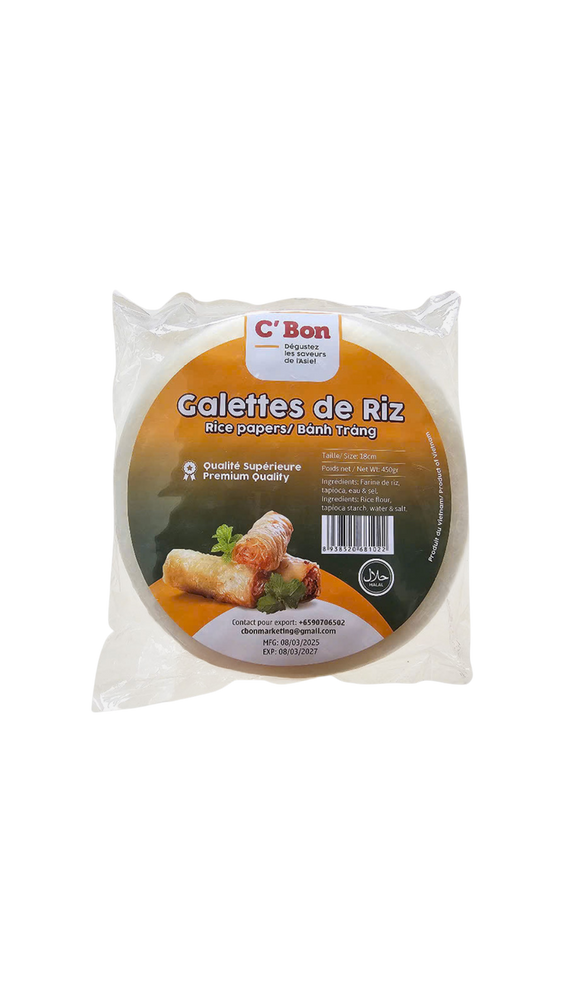 Feuilles de riz idéales pour rouleaux et recettes asiatiques.