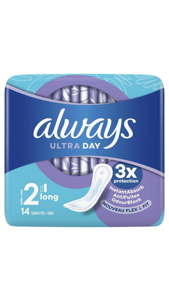 Serviettes hygiéniques ultra-fines longues pour une couverture renforcée, pack de 14.