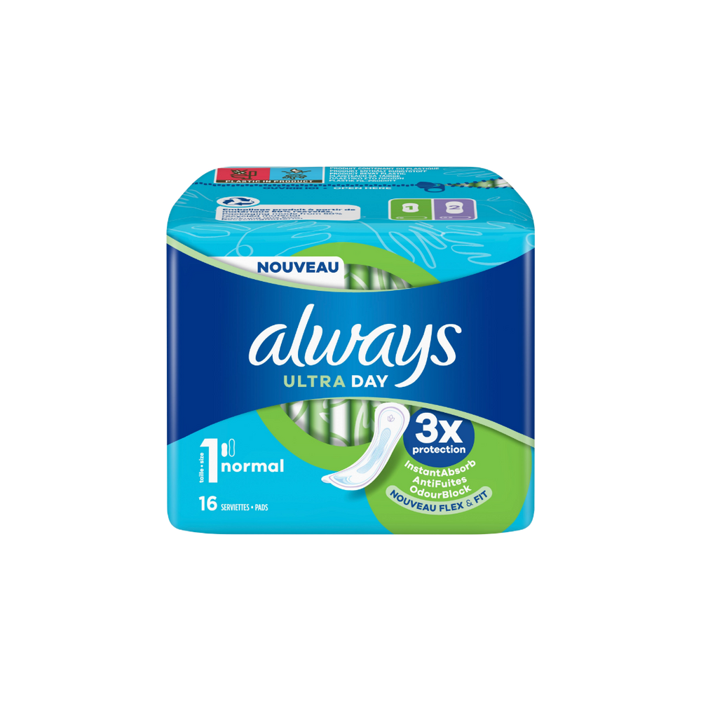Serviettes hygiéniques ultra-fines normal, pack de 16.