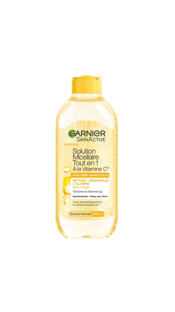 Eau micellaire Garnier pour nettoyage doux du visage et démaquillage.